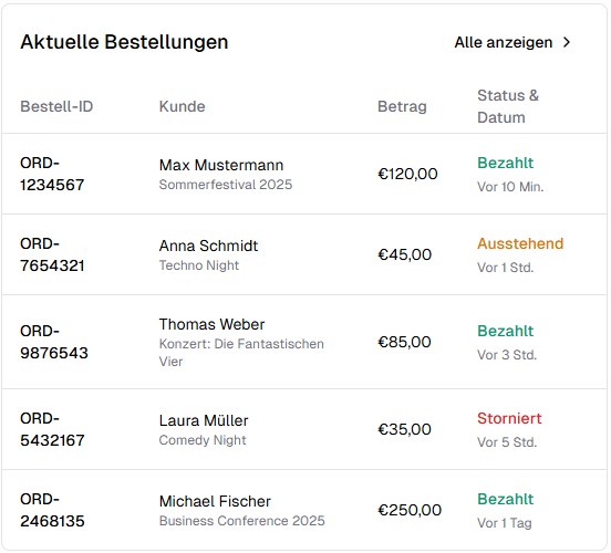 Tickable vereint leistungsstarke Software mit persönlichem Service. Während andere nur Tools bieten, übernehmen wir auf Wunsch die komplette Einrichtung und Betreuung deiner Events. Du konzentrierst dich auf dein Event – wir kümmern uns um den Rest.