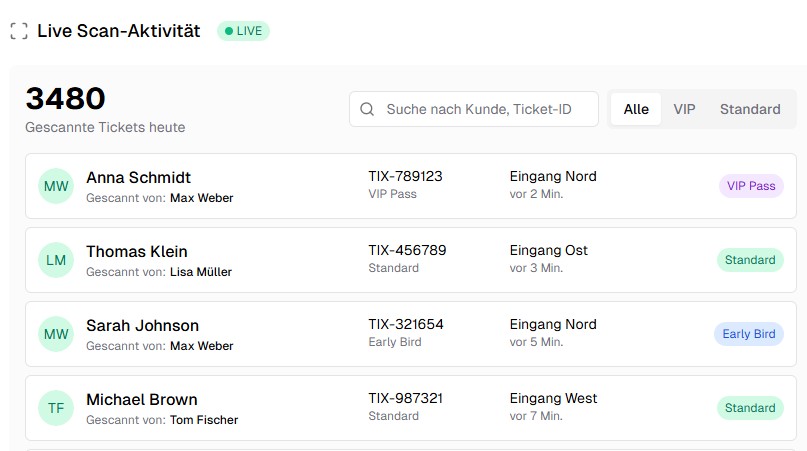 Wenn der Eventtag kommt, zählt jedes Detail: Ein schneller Einlass, funktionierende Scanner, VIP-Zonen – und notfalls ein Mensch, der sofort unterstützt. Unsere Lösung ist nicht nur ein Online-Tool, sondern ein echter Partner am Eventtag.